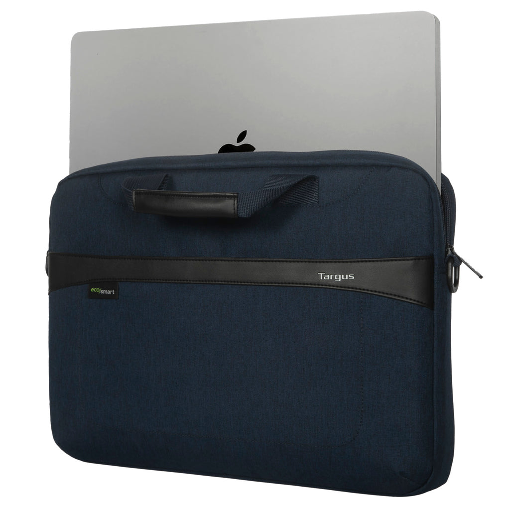 Stay organized and stay ahead with the 15-16" GeoLite EcoSmart® Slim Brief. Sporting a modern design, it’s ideal for professionals looking to balance style, storage, and laptop protection. Slimmer than a briefcase and more functional than a sleeve, the GeoLite EcoSmart® Slim Brief offers a divided laptop compartment allowing for a separate space for documents and files. The front zip compartment provides easy access to your phone, charger, and other accessories. Its removable shoulder strap, soft-grip handles, and luggage trolley strap offer comfortable carrying options. And, its water-resistant exterior and earth-conscious interior, deliver on style, functionality, and sustainability.