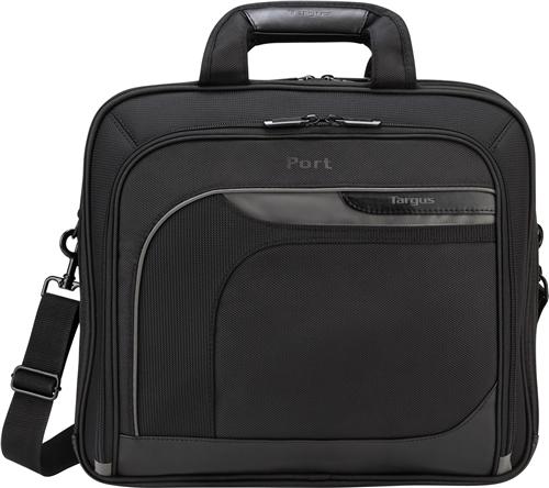 The 15.4” Port® Briefcase is compact and designed for business travel. The main laptop compartment features patented SafePort® Air Cushion Bar, specifically engineered to shield your laptop from the shock of impact. There is also a roomy, divided file compartment, along with a separate, organized workstation for pens and office supplies.