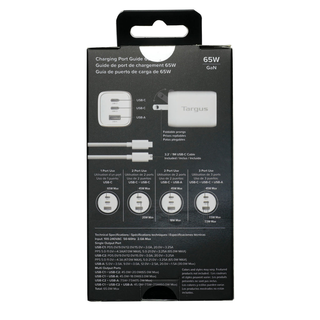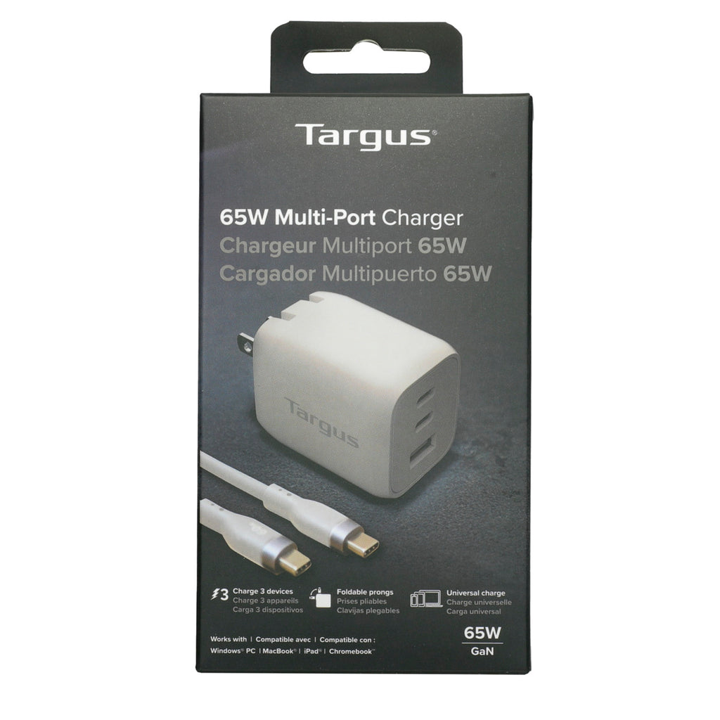 Stay powered up wherever you go with the Targus® 65W Multi-Port GaN Wall Charger. This compact, travel-friendly charger is designed with convenience in mind – its foldable prongs make it easy to toss in your bag, while its powerful performance ensures you're always ready to go.