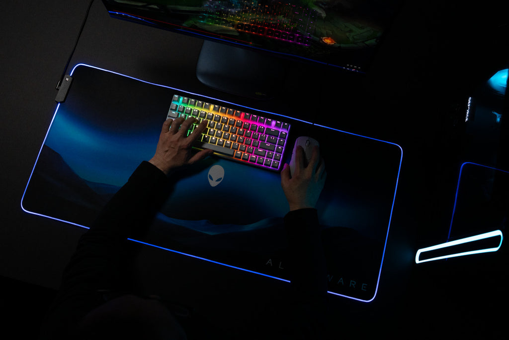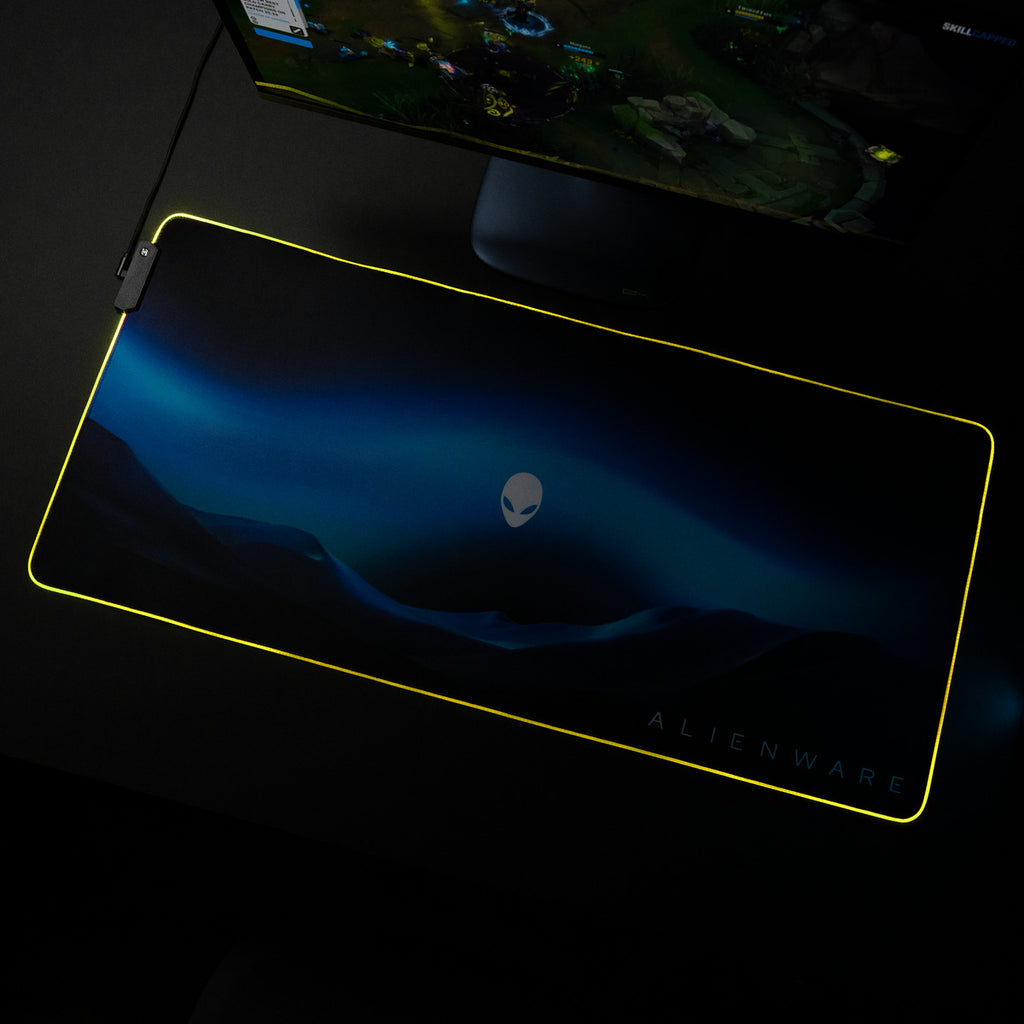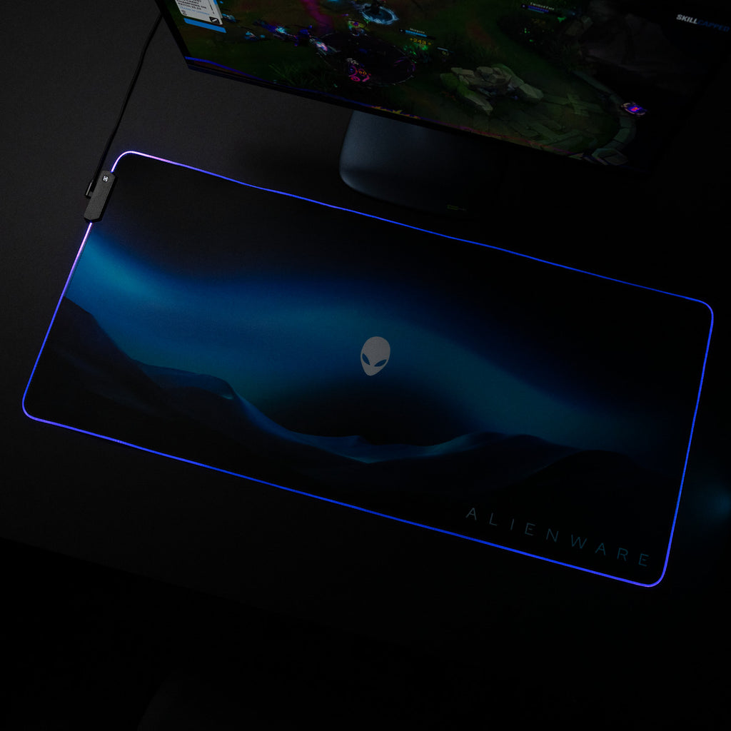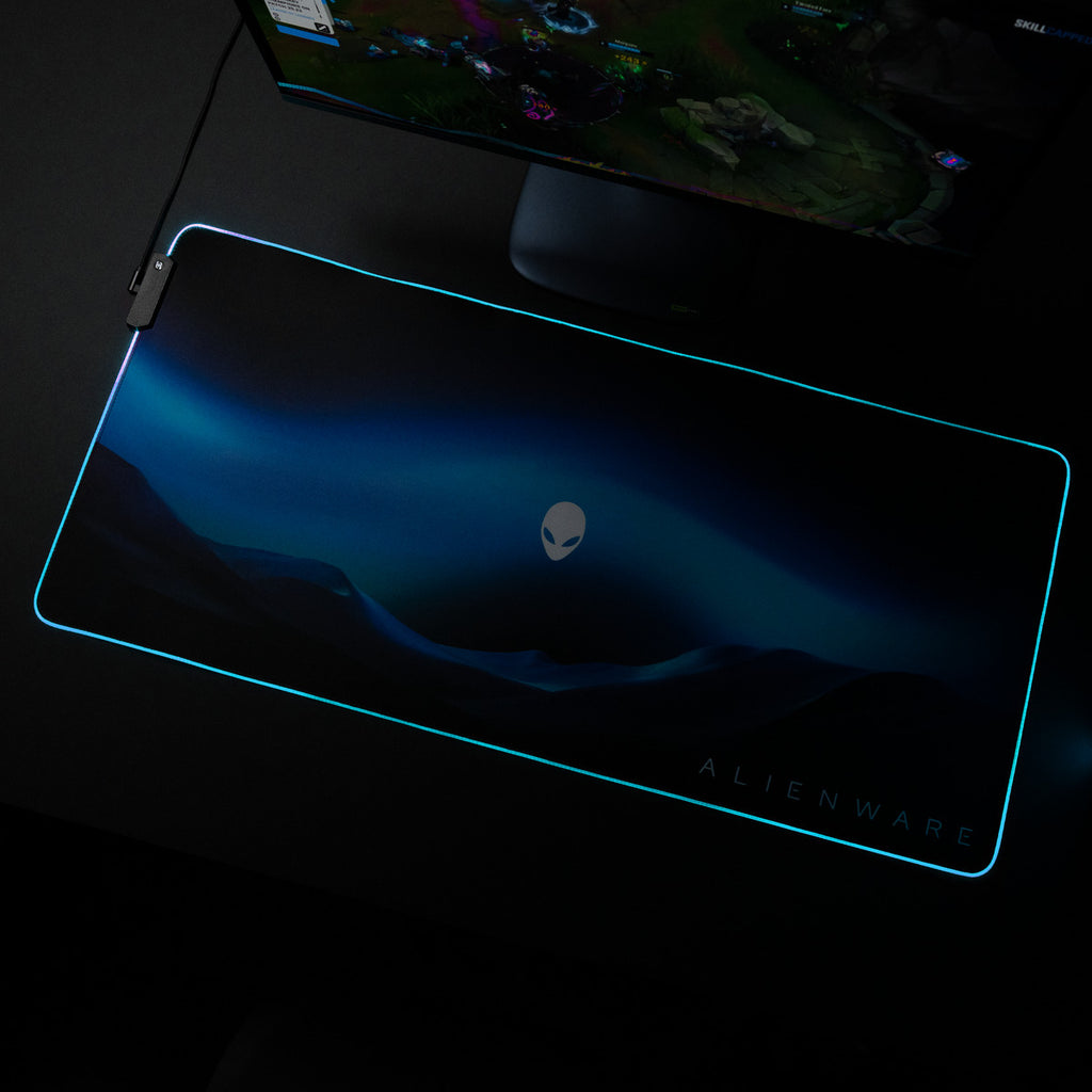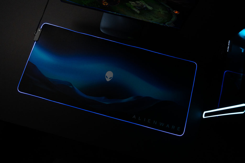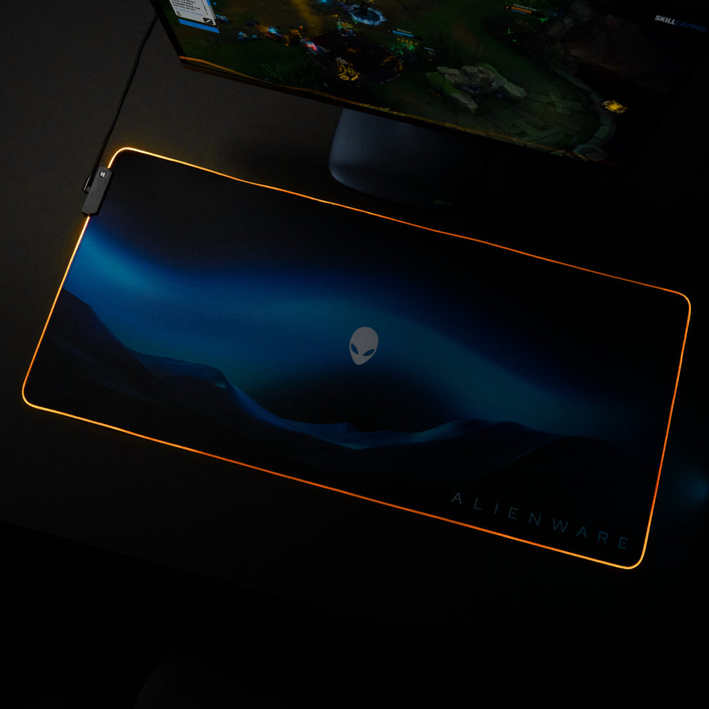 Light up your setup with the Alienware Desktop Mousepad – the ultimate mousepad for gamers who demand speed and control. RGB brilliance and bold design illuminate every battlefield.