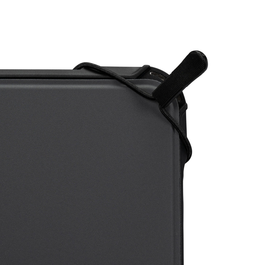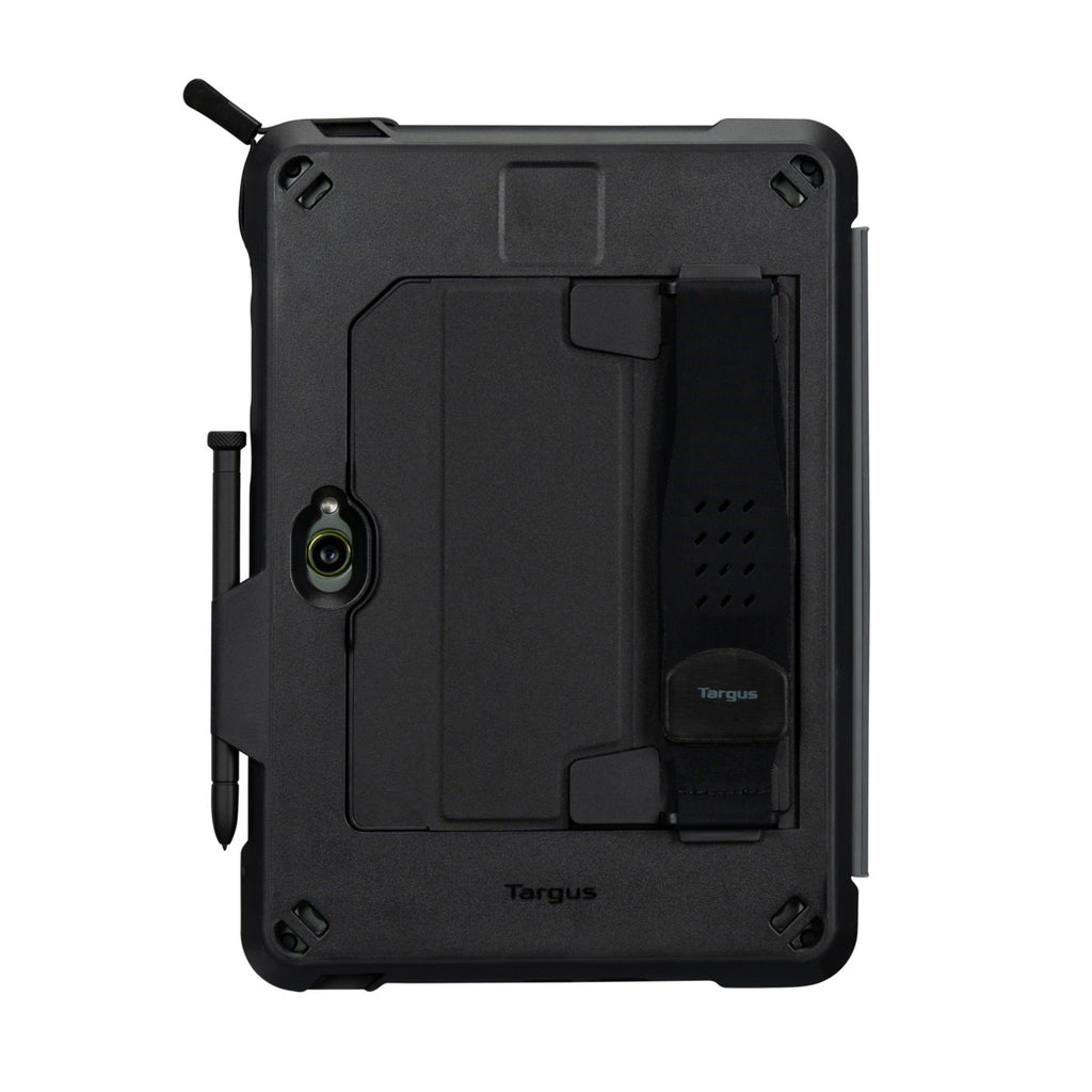 Protective in design, the field-ready case also delivers ultimate functionality. Its detachable hand strap provides a secure hold, while its integrated sliding handle doubles as a stand that enables two hands-free typing or viewing angles.
